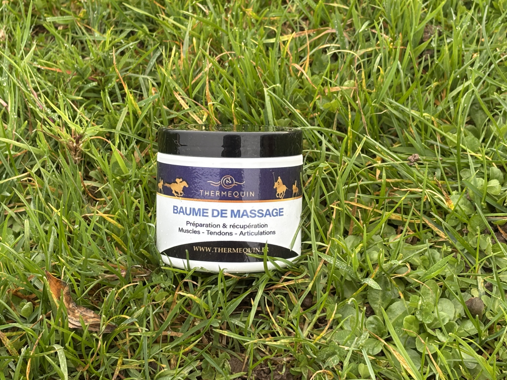 Que ce soit en prévention (préparation / récupération) ou en soin (suite à une blessure ou une pathologie connue), les massages font de plus en plus partie de la routine quotidienne de nombreux chevaux. Depuis quelques semaines, nous testons le baume de massage de Thermequin.