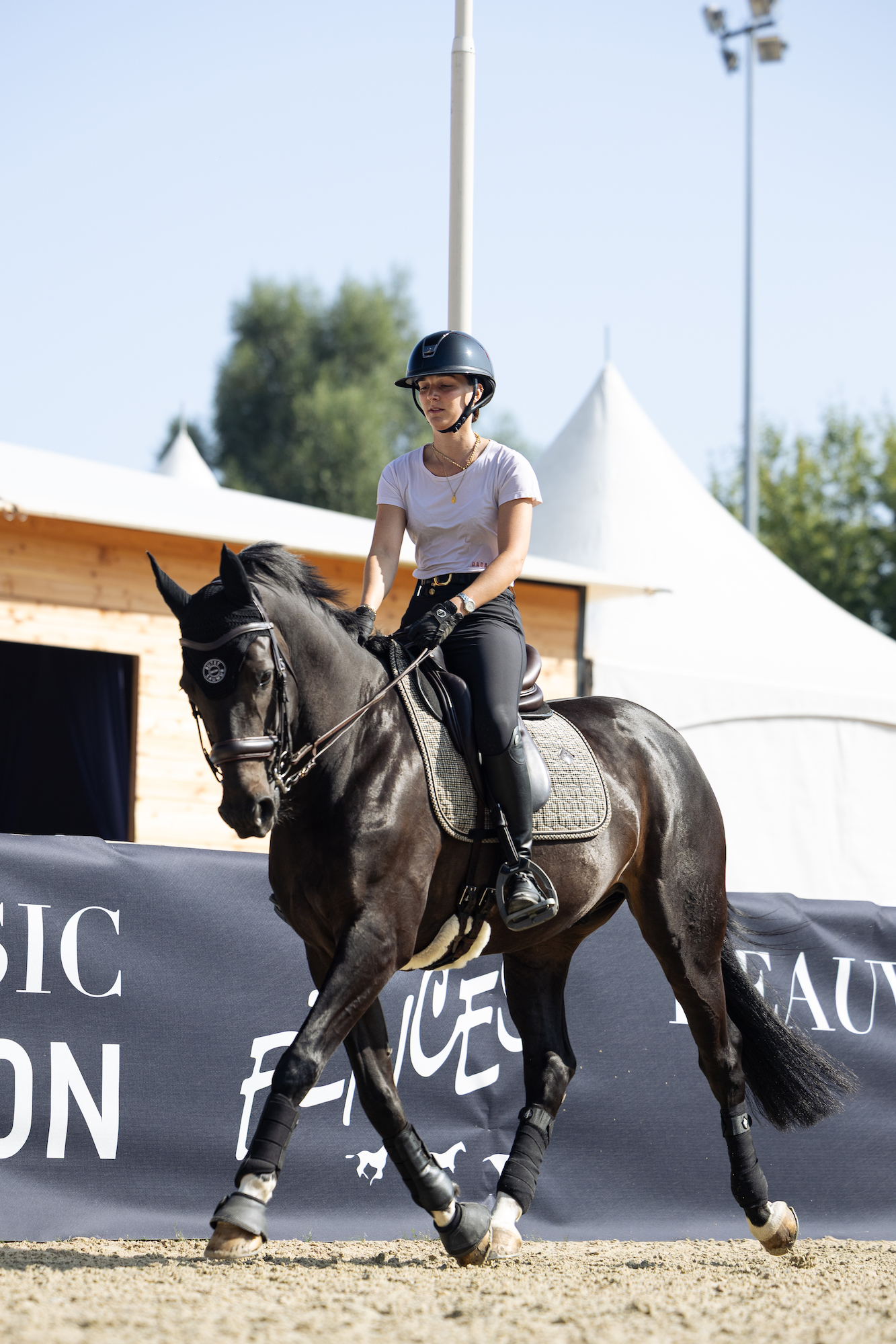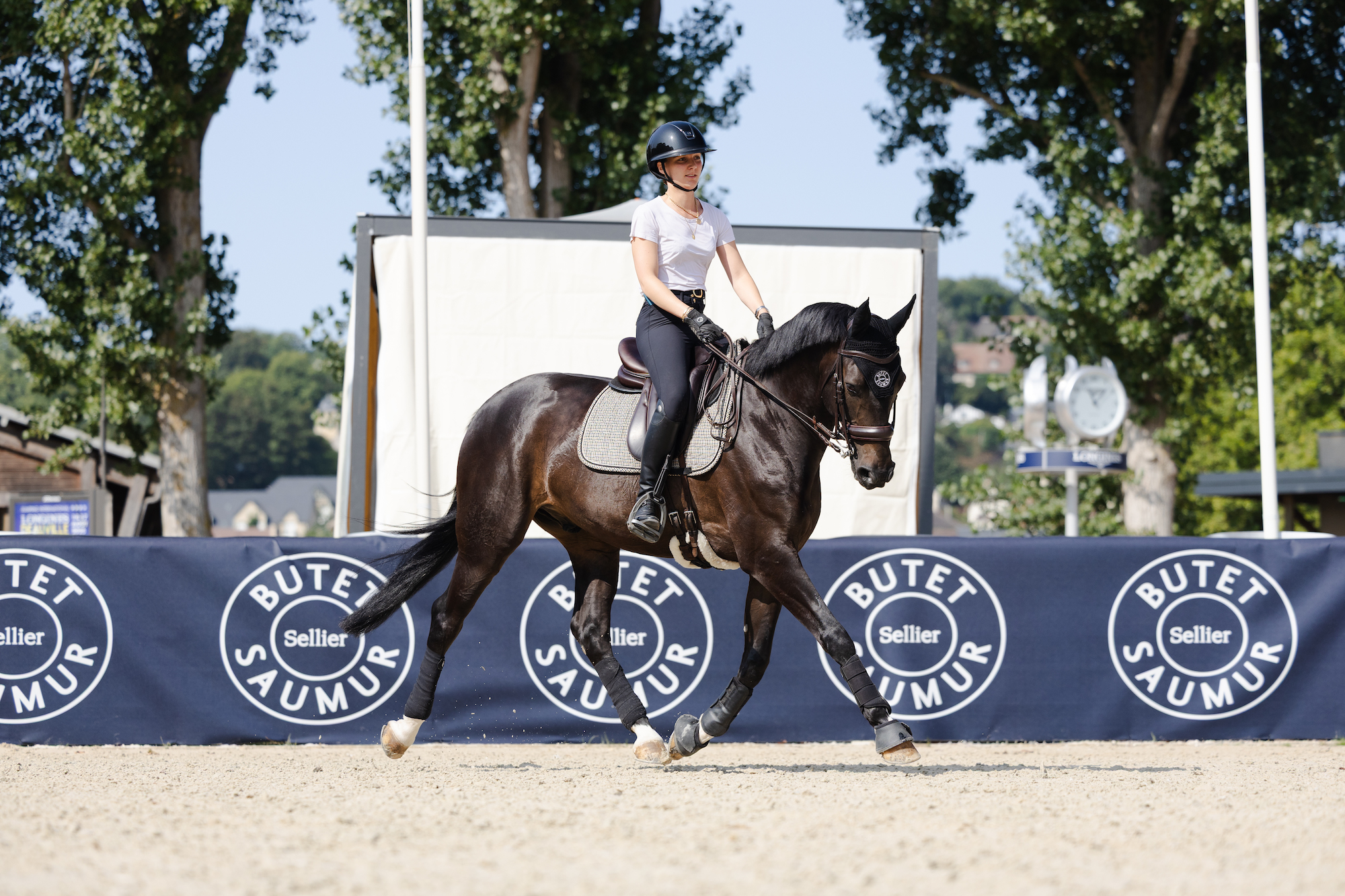 Au travail, la sangle reste bien en place, la selle ne bouge pas non plus, le cheval testeur semble très à l’aise dans sa locomotion et sa respiration, malgré la chaleur.