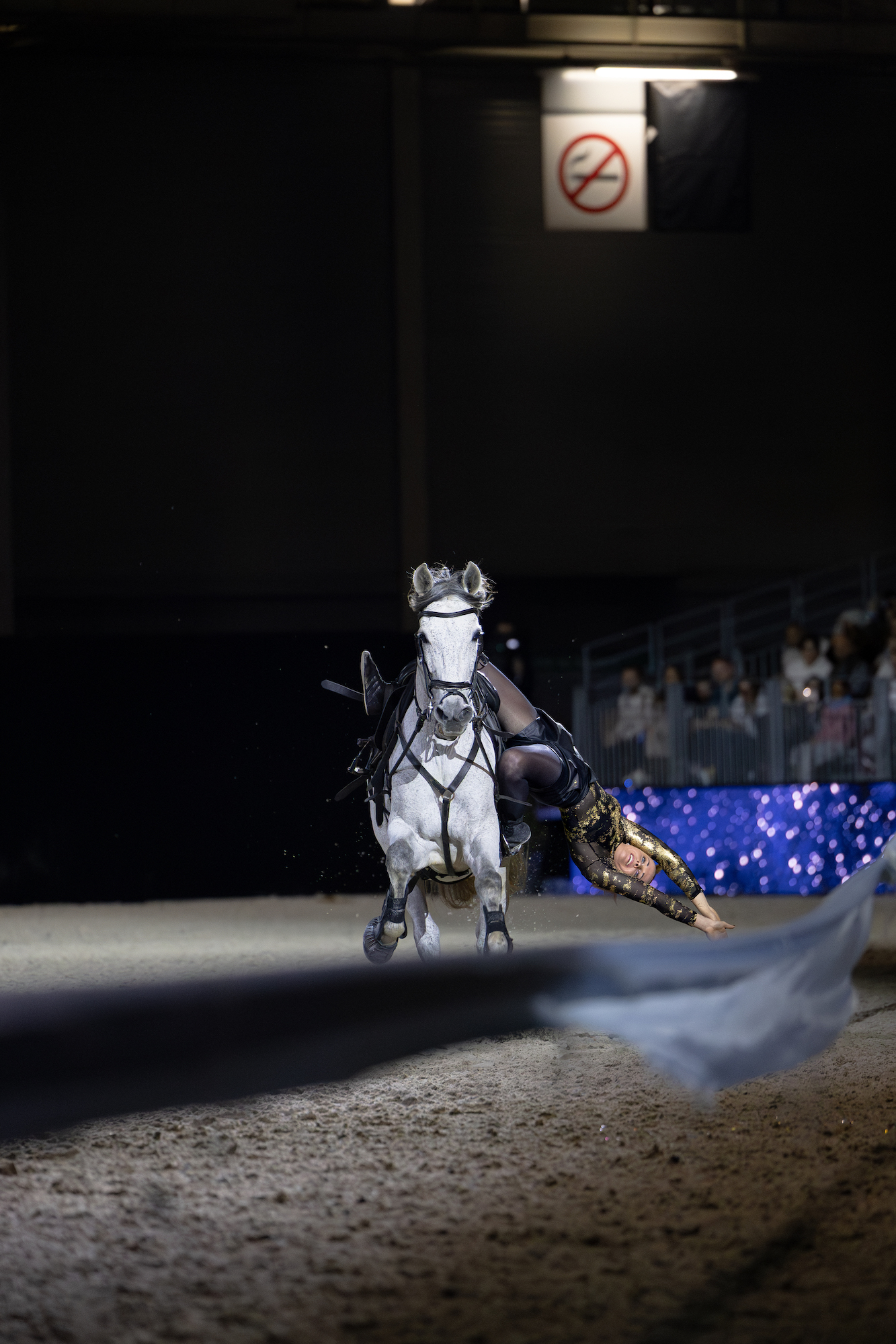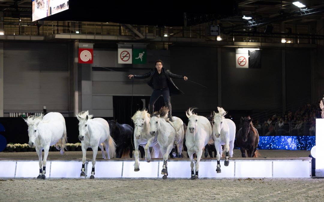 La ferveur du salon ne s’est pas éteinte avec la tombée de la nuit, bien au contraire. La piste s’est transformée pour accueillir la traditionnelle Nuit du Cheval, un spectacle immersif mêlant prouesses équestres et mise en scène artistique. Sous les projecteurs de la Porte de Versailles, le public a été transporté dans un univers où la poésie et la technique se rencontrent, offrant une parenthèse enchantée après l’intensité des premières épreuves de la journée. Entre voltige, dressage de haute école et tableaux chorégraphiés, cette soirée a célébré la dimension artistique de l’équitation, rappelant que derrière chaque athlète se cache un artiste. Le public a été transporté par la prouesse technique de Lorenzo, qui a une nouvelle fois repoussé les limites de l’impossible avec ses quinze chevaux en totale liberté, offrant une démonstration de puissance et de synchronisation spectaculaire. Dans un registre plus intime, l’émotion était à son comble lors du passage d’Hassan et du Docteur Peyo, un moment suspendu et poétique qui a rappelé à tous la sensibilité exceptionnelle de l’animal. La transmission et la complicité étaient également au cœur de cette soirée, illustrées par le duo touchant d’Alizée Froment et sa fille, dont la symbiose sur scène a ému les tribunes. L’univers féerique de la Showteam Mirage Espagnol a ensuite transformé l’arène en un monde onirique où chevaux et ballons semblaient ne faire plus qu’un dans une danse aérienne. Enfin, Elisa Laville a complété ce plateau d’exception avec une démonstration mêlant une liberté totale et une complicité absolue avec ses montures.