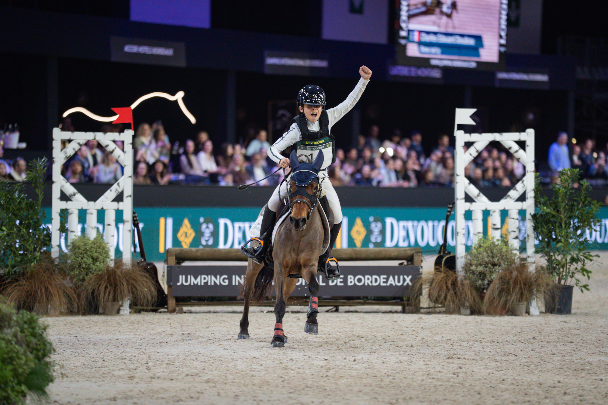 Ce samedi, la piste bordelaise a mis les poneys à l’honneur avec deux épreuves phares : le Derby Poney by Devoucoux et la Super As Poney Élite – Grand Prix Excellence. Deux formats, deux niveaux, mais un même fil conducteur : la passion et la relève du saut d’obstacles français.