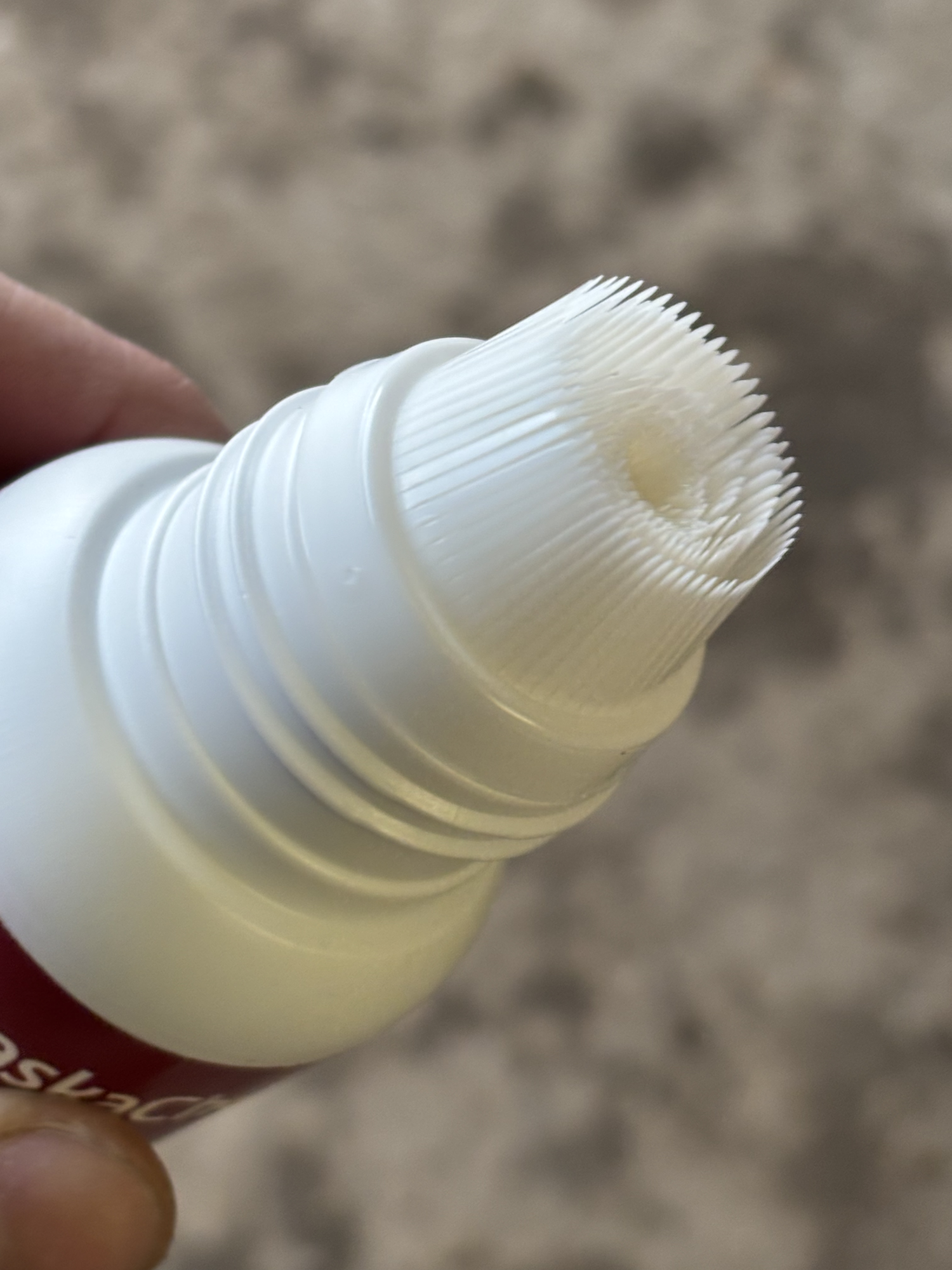 À la première utilisation, j’ai eu un petit doute, car pour le premier pied, j’ai surtout eu du produit blanc/jaune qui est sorti, mais pour les postérieurs, plutôt du liquide transparent. Depuis ce jour-là, j’ai pris l’habitude de bien secouer le flacon avant utilisation et je n’ai plus jamais eu ce problème. Le produit est bien homogène à chaque application.