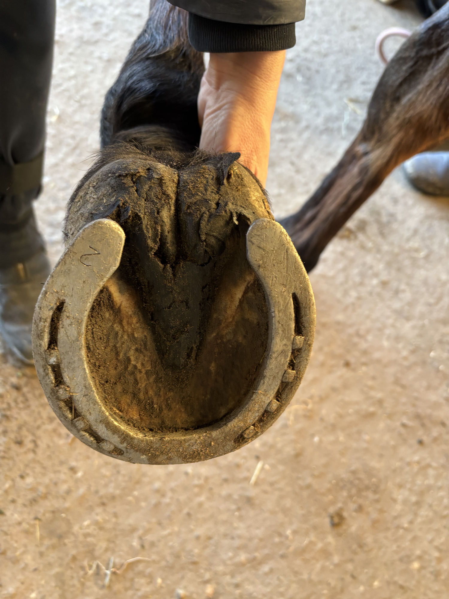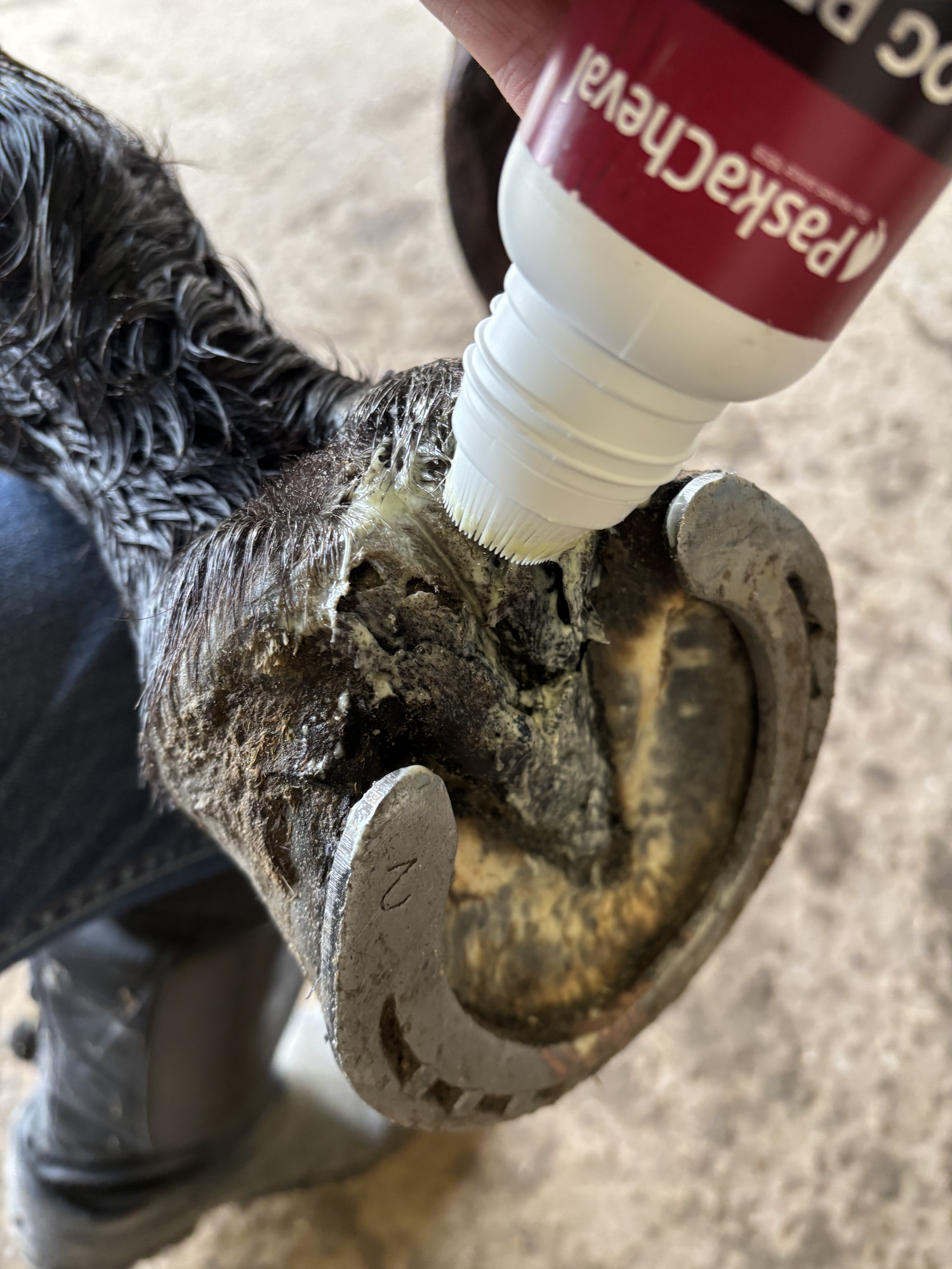 Les fourchettes de la jument sur laquelle j’ai fait le test étant vraiment particulièrement humides au moment du début du test, j’ai commencé par une application quotidienne. Dès le 2ᵉ jour, j’ai constaté un assèchement. On peut donc souligner l’effet particulièrement rapide. Après une semaine d’utilisation, je suis passée à une application un jour sur deux (+ les jours où elle a travaillé sur une piste particulièrement mouillée). La bonne évolution a continué. De jour en jour, j’ai trouvé les fourchettes de mieux en mieux.