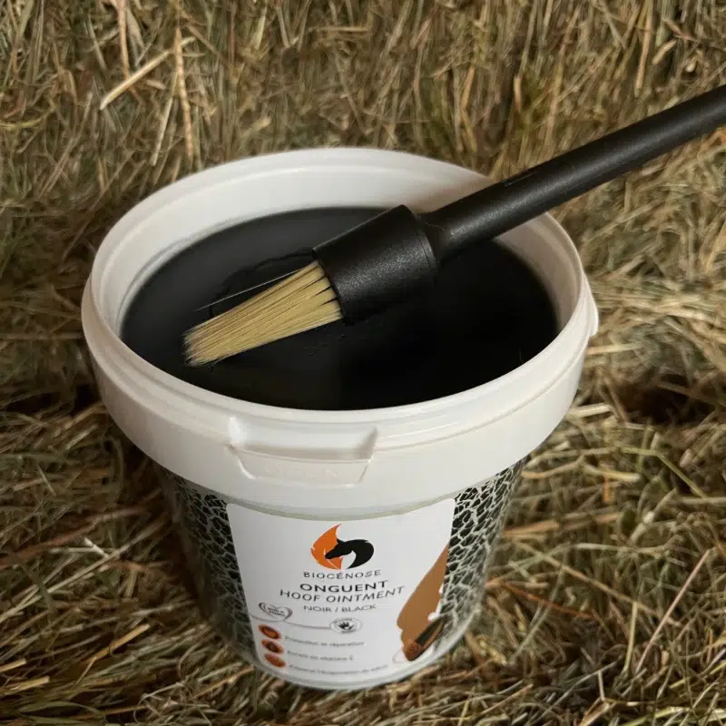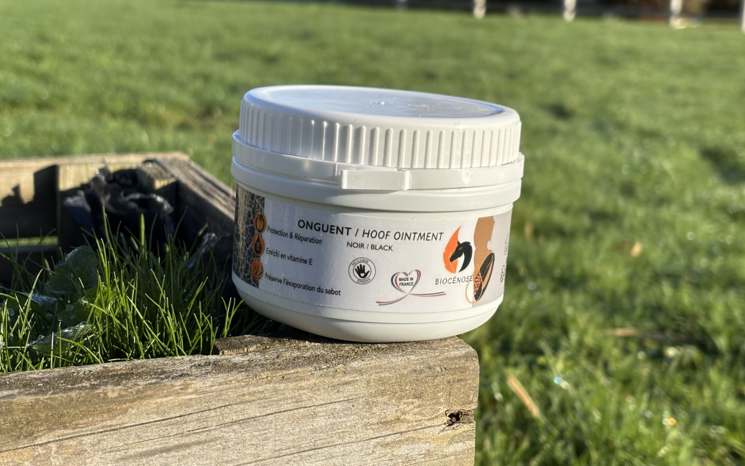 Ces dernières semaines ayant été particulièrement humides, j’ai profité de ces conditions pour tester l’onguent noir de Biocénose sur ma jument, dont les pieds ont tendance à se dégrader rapidement en milieu très humide. Ayant déjà utilisé l’onguent vert de la marque l’été dernier, avec des résultats très satisfaisants (vous pouvez retrouver l’article ici), j’étais curieuse de découvrir cette version plus adaptée à la saison.